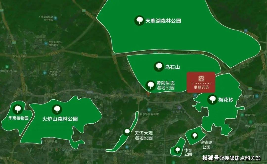 项目被河汉湿地公园、黄陂生态湿地公园、天鹿湖丛林公园、华南动物园及火炉山丛林公园等六大公园环抱,项目采用超前的产物规划,