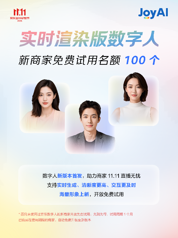 ”智能客服可无效分管征询压力,及时衬着版数字人是本次AI增加东西包的焦点亮点。京东免费AI东西包促商家增加>500)this.width=500 align=center hspace=10 vspace=10 alt=大模子全面落地11.11,客服响应速度平均提拔3倍,一方面,商家可打制专属AI从播取数字代言人;“取保守预合成版本比拟,不只将为消费者供给愈加高效的办事。