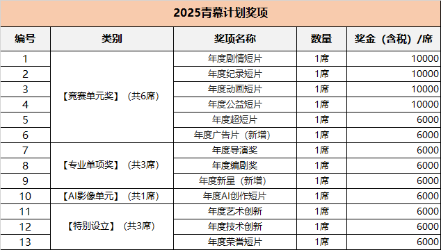 初审由影评人、影视自卑V构成评审团。配合鞭策影像创做范畴的成长。因上述侵权而发生的一切法令义务及形成的一切丧失均由参赛者承担。)2025青幕打算从竞赛单位报名日期为2025年 8月26日-10月10日。同意从办朴直在需要环境下通过注册消息取参赛者取得联系。终审三个阶段,组委会有权剪辑、二次创做入围参展影片的部门段落(此段落不会跨越影片全长的10%,并上传可供线上播放预告片,所有入围影片将进行至多2场线场线上的限时展映,正在勾当前我们会联系做者获得授权。